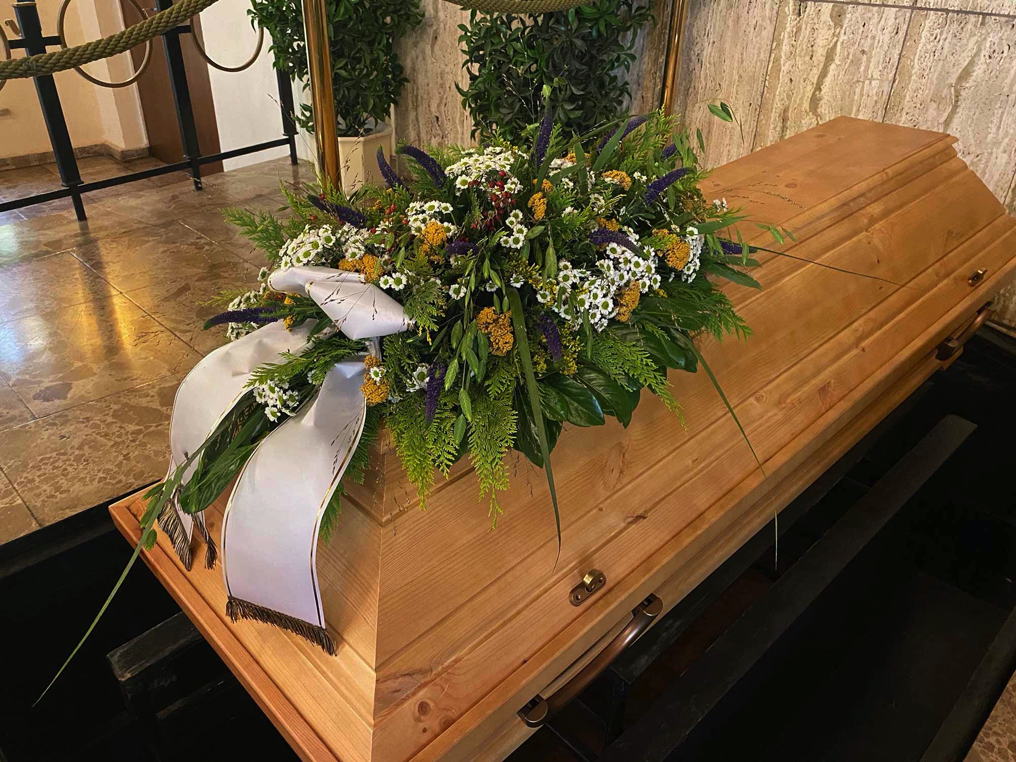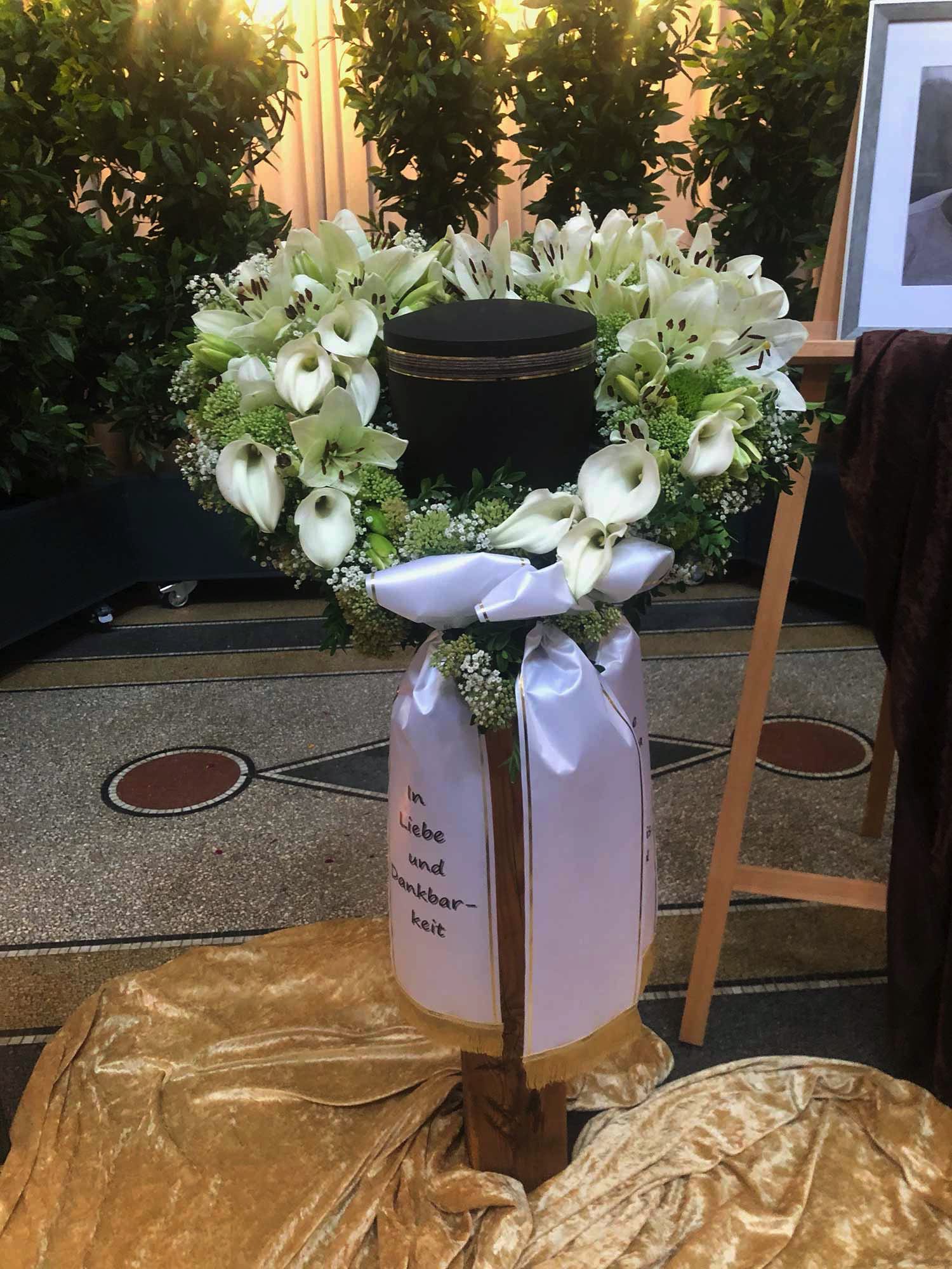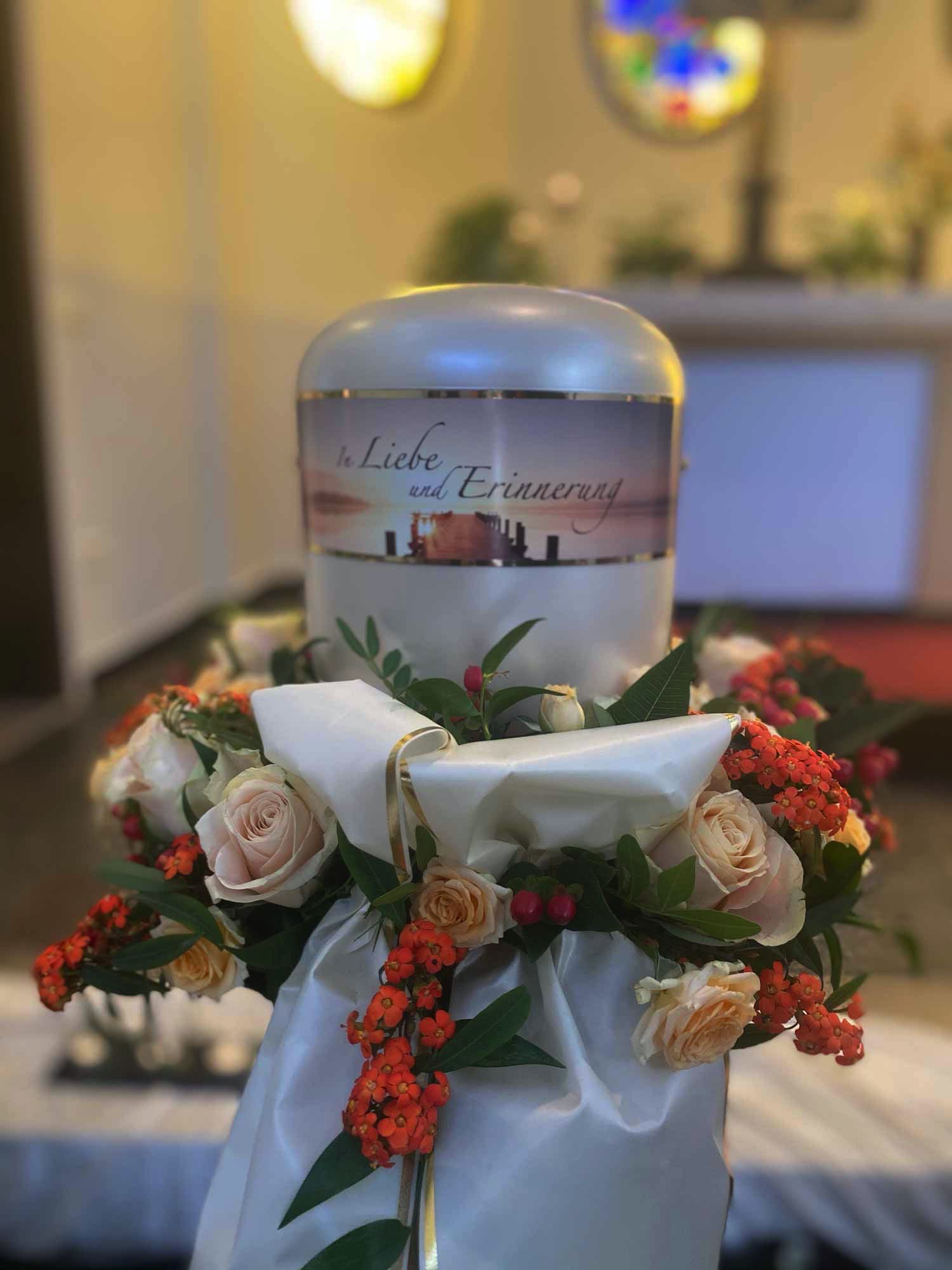 Der Blumenschmuck ist ein wichtiger Bestandteil einer Trauerfeier. Die Lieblingsblumen des Verstorbenen, ein besonders farbenfrohes Gebinde oder mit einem besonderen Motiv. Erlaubt ist, was gefällt und was Sie an den Menschen erinnert, den Sie verloren haben. Lassen Sie sich an dieser Stelle von einer Auswahl an Urnenschmuck, Sarkbuketts, Kränzen und Gestecken inspirieren.