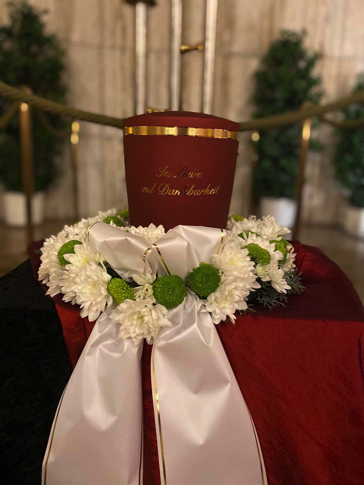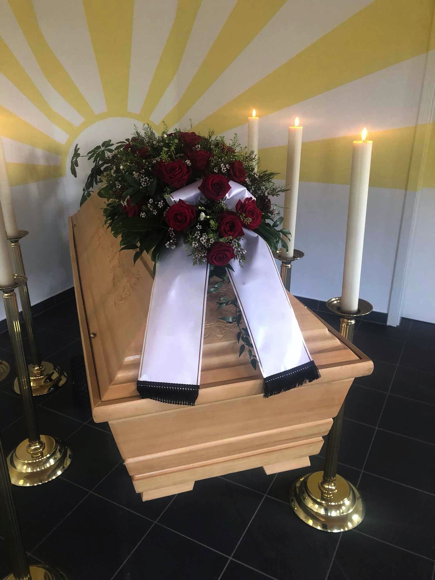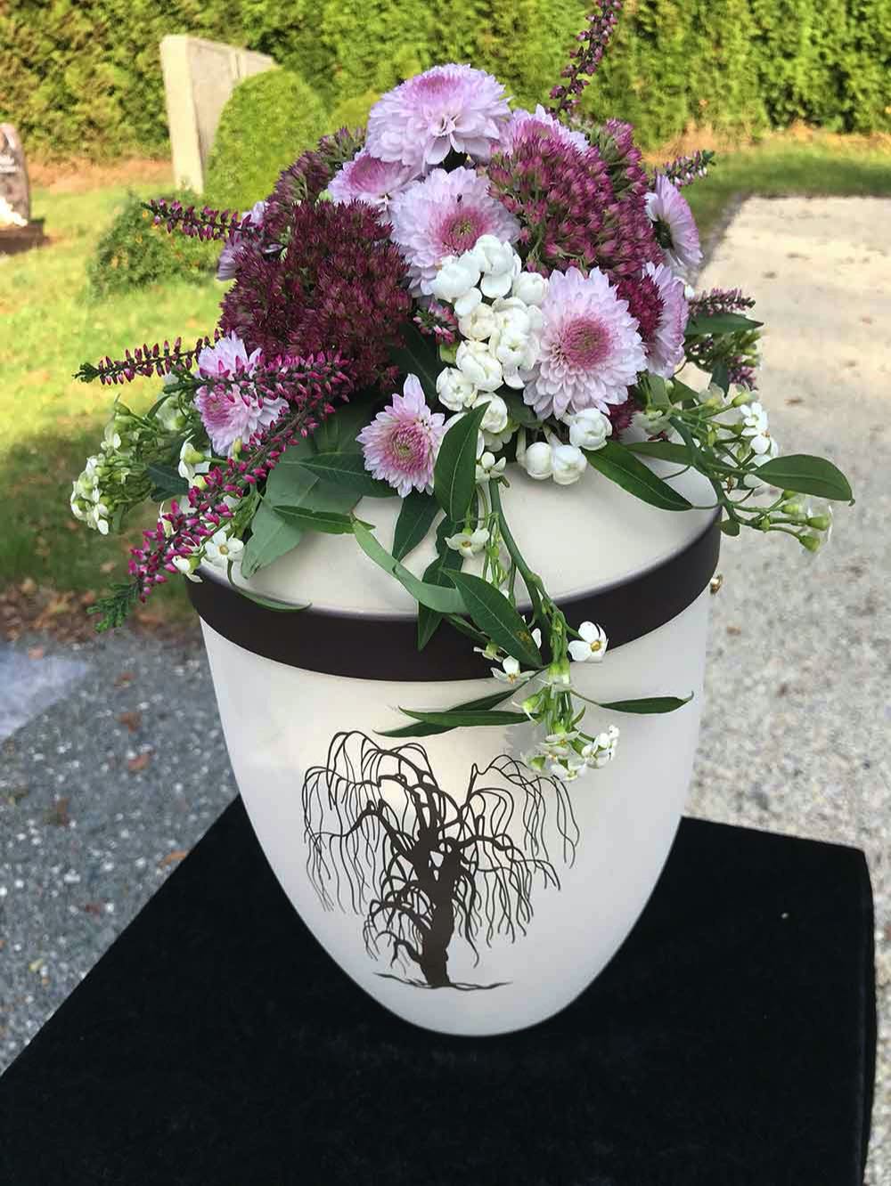 Der Blumenschmuck ist ein wichtiger Bestandteil einer Trauerfeier. Die Lieblingsblumen des Verstorbenen, ein besonders farbenfrohes Gebinde oder mit einem besonderen Motiv. Erlaubt ist, was gefällt und was Sie an den Menschen erinnert, den Sie verloren haben. Lassen Sie sich an dieser Stelle von einer Auswahl an Urnenschmuck, Sarkbuketts, Kränzen und Gestecken inspirieren.